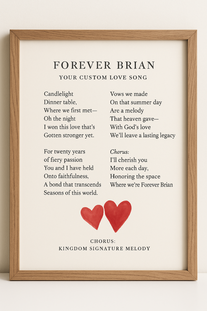 I surprised my wife with a custom song on our anniversary and watched her tear up before the first verse ended. She said she felt seen, loved, and cherished in a way words alone never could. This song captured our love story perfectly.